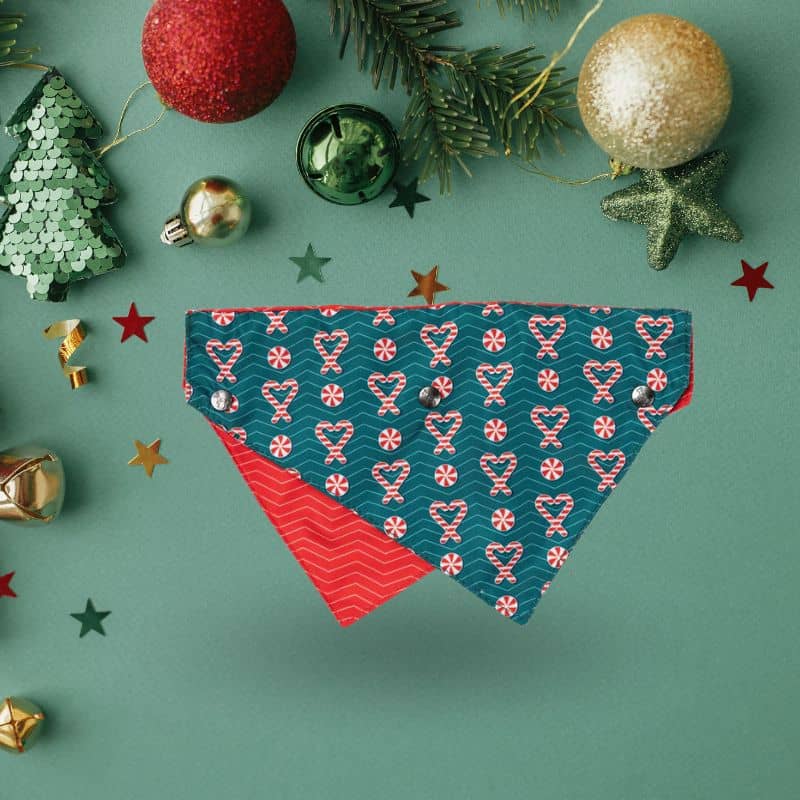 ENSEMBLE BANDANA RÉVERSIBLE & NOEUD PAPILLON POUR CHIEN - MOTIF SUCRE D'ORGE DE NOËL