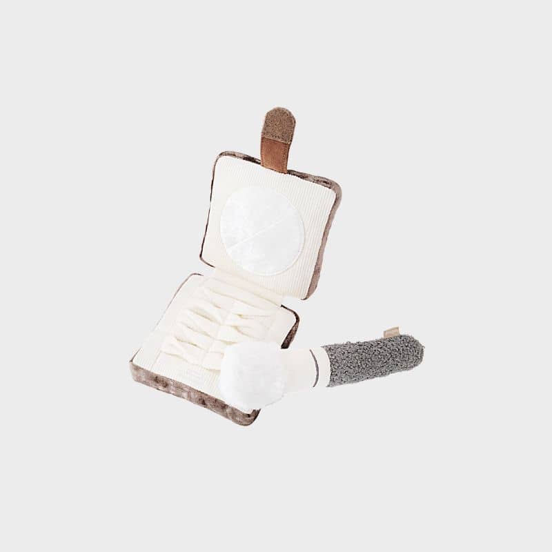 Cette peluche de flair en forme de fond de teint poudre de la marque Lambwolf est un jouet d'occupation en deux parties : un pinceau et un étui de poudre compacte dans lequel cacher des friandises.Ouvrez le jouet et cachez des friandises dans les cachettes prévues à cet effet avant de le refermer. Votre chien va alors fouiller pour ainsi développer son odorat.