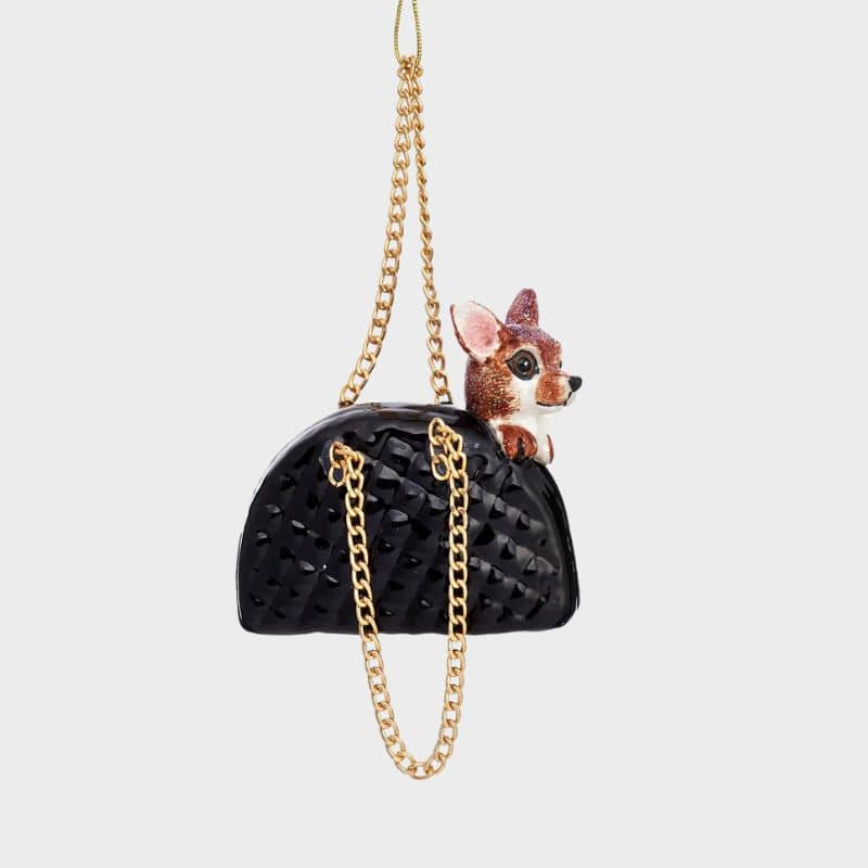 DÉCORATION DE NOËL - CHIHUAHUA DANS UN SAC À MAIN