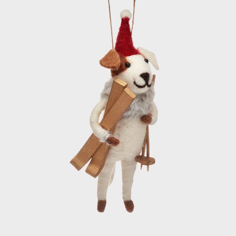 DÉCORATION DE NOËL EN FEUTRE - CHIEN AVEC DES SKIS